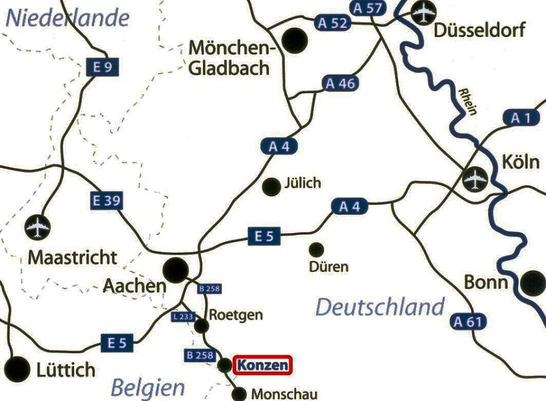 wo Sie nur noch rechts oder links fahren können: rechts weiter (B258) durch Roetgen bis nach Konzen.